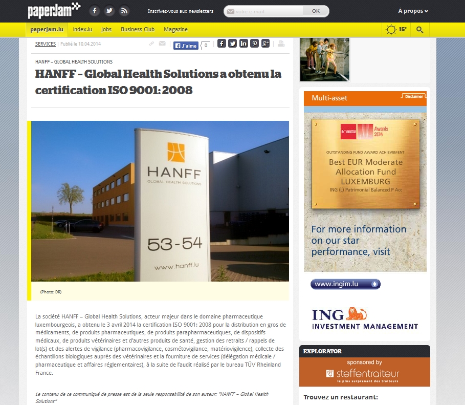 Communiqué de presse "paperjam" : Certification ISO 9001:2008